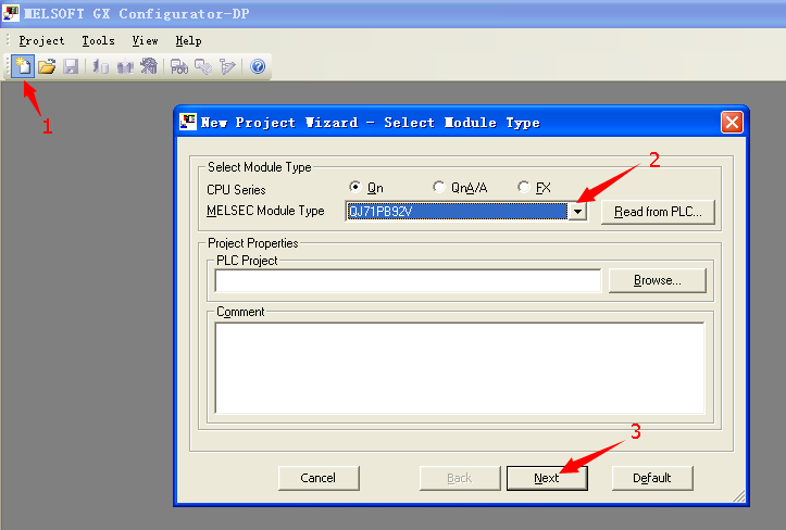 1、新建 2、選擇型號QJ71PB92V 3、下一步(如圖d)