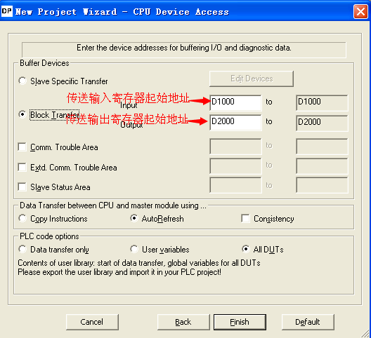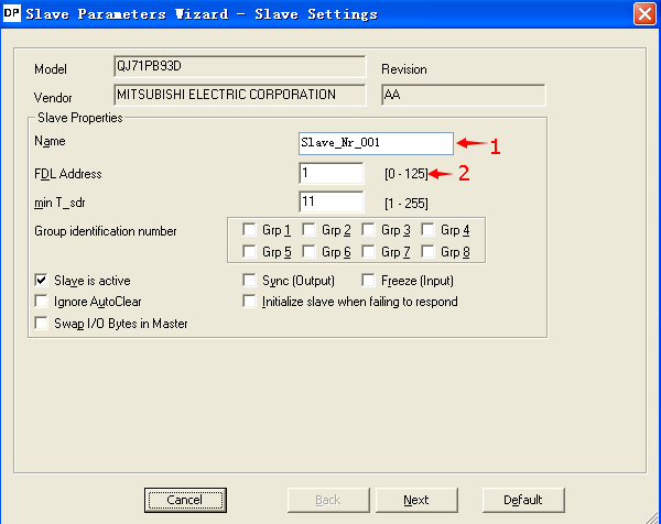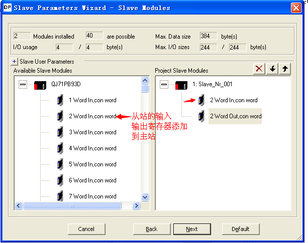 1、新建→2、選擇型號QJ71PB93D→3、下一步,如圖j,插槽位置、填寫從站站號,(如圖k)填寫從站輸入輸出寄存器數。