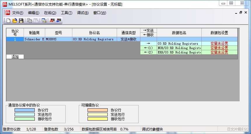 按如下窗口選擇,協議名一項里可以根據自己的實際情況,選擇MODBUS的功能碼,此處我們選擇讀保持寄存器功能碼03,